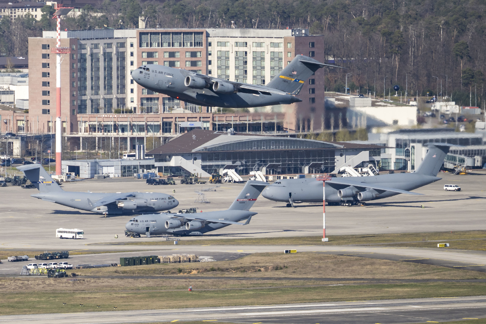 Flugverkehr am US-Luftwaffenstützpunkt Ramstein in Rheinland-Pfalz Auf die erneute Drohung von US-Präsident Donald Trump mit einem Teilabzug US-amerikanischer Streitkräfte aus Deutschland hat Berlin reagiert. Im Rahmen der NATO leiste die Bundeswehr "Seite an Seite mit den Vereinigten Staaten von Amerika, Seite an Seite mit den Bündnispartnern in der gesamten NATO" eine Arbeit an strategisch wichtigen Standorten in Deutschland, sagte Kanzler Friedrich Merz bei einem Besuch am Truppenübungsplatz im niedersächsischen Munster. Es sei "ein gutes Zeichen", dass der kommandierende General der US-Streitkräfte in Europa und Afrika am Dienstag eine gemeinsame Übung in Munster verfolgt habe. "Denn diese Arbeit leisten wir eben Schulter an Schulter zum gegenseitigen Nutzen und in tiefer transatlantischer Verbundenheit", fügte Merz hinzu.